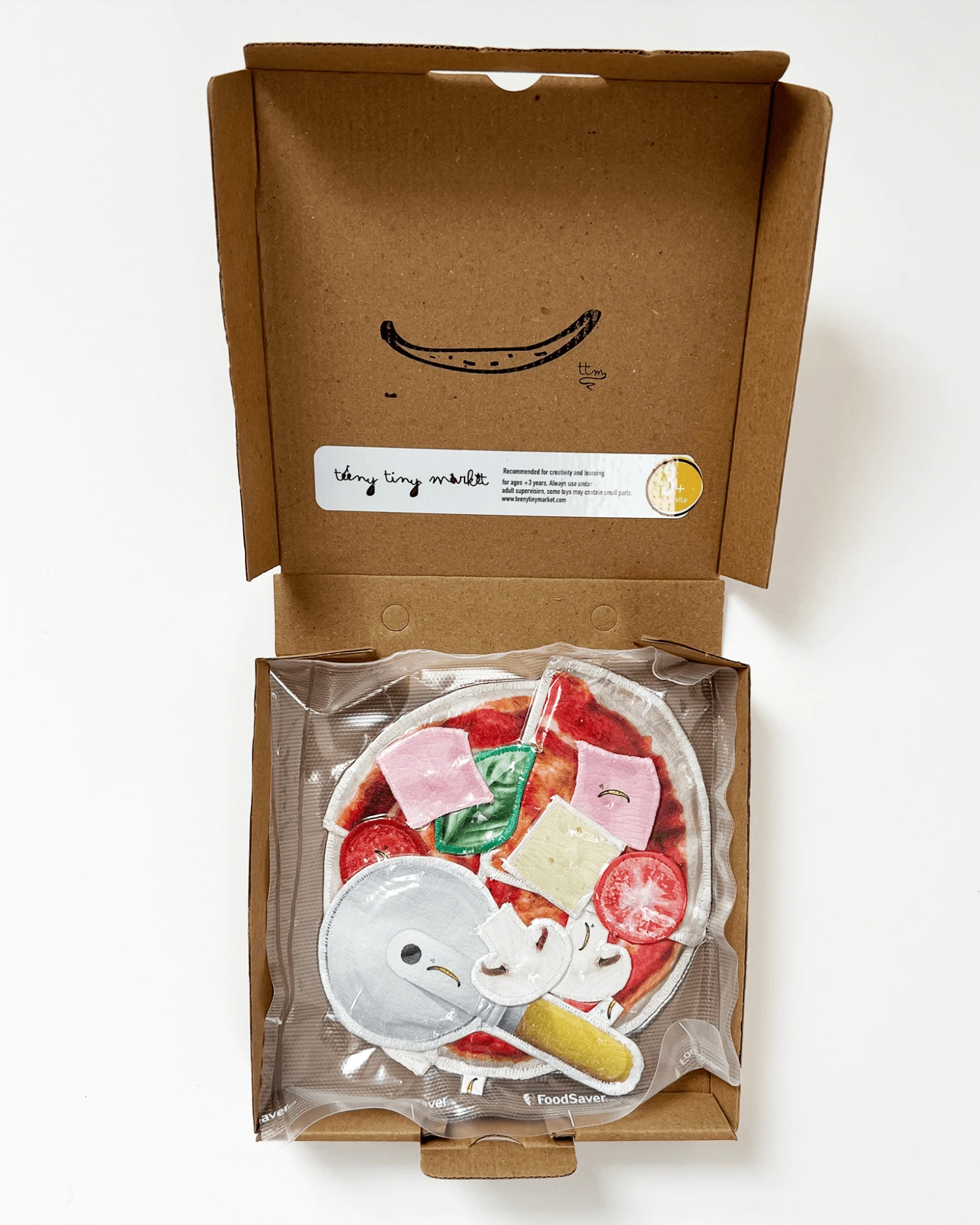 - Includes pizza box, pizza butter, 4 slices + assorted toppings