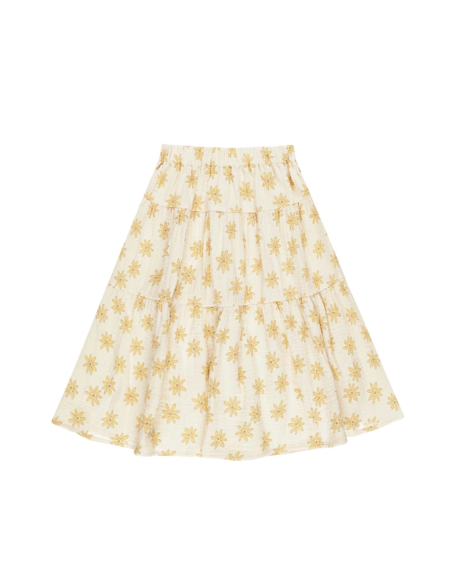 This cotton jersey midi skirt has three flowing tiers, an elastic waistband, and all the flowy fun.