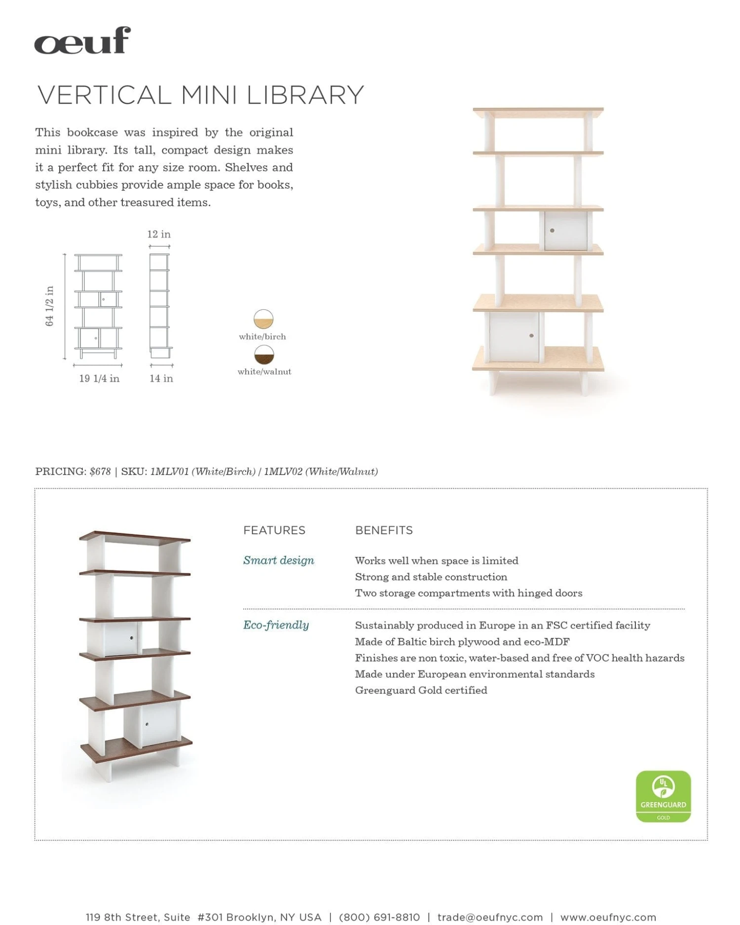 - Materials: Baltic birch plywood and eco-MDF. All finishes are non-toxic, water-based and free of VOC health hazards.
