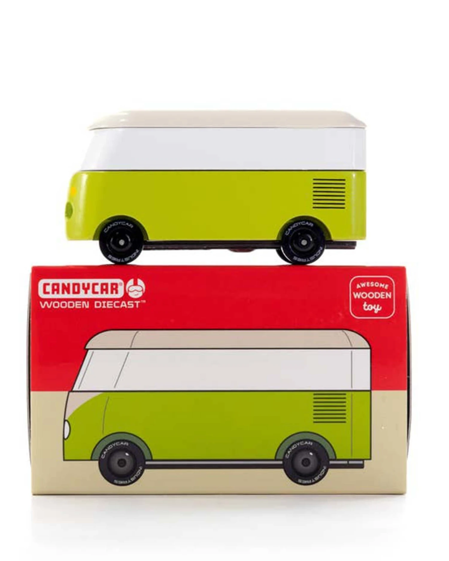 Groovy, dude! A pocket-sized, uniquely cute toy, made of wood and pure nostalgia. Our patented Wooden Diecast™ construction is all solid beech, painted with water-based paints, and is fully endorsed by our partners at VW®. This one’s limey and leafy, with good times in tow. Catch you later, alligator!