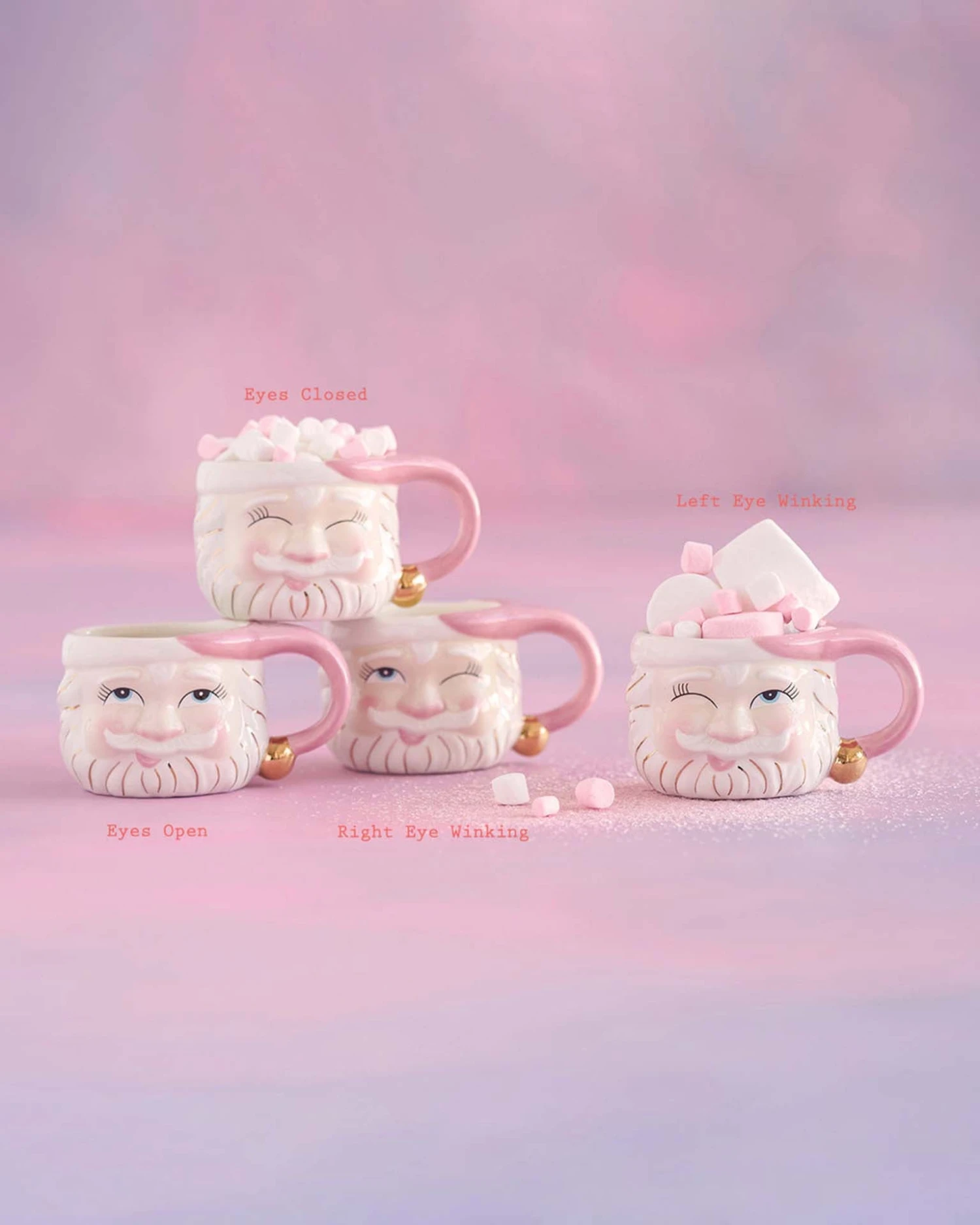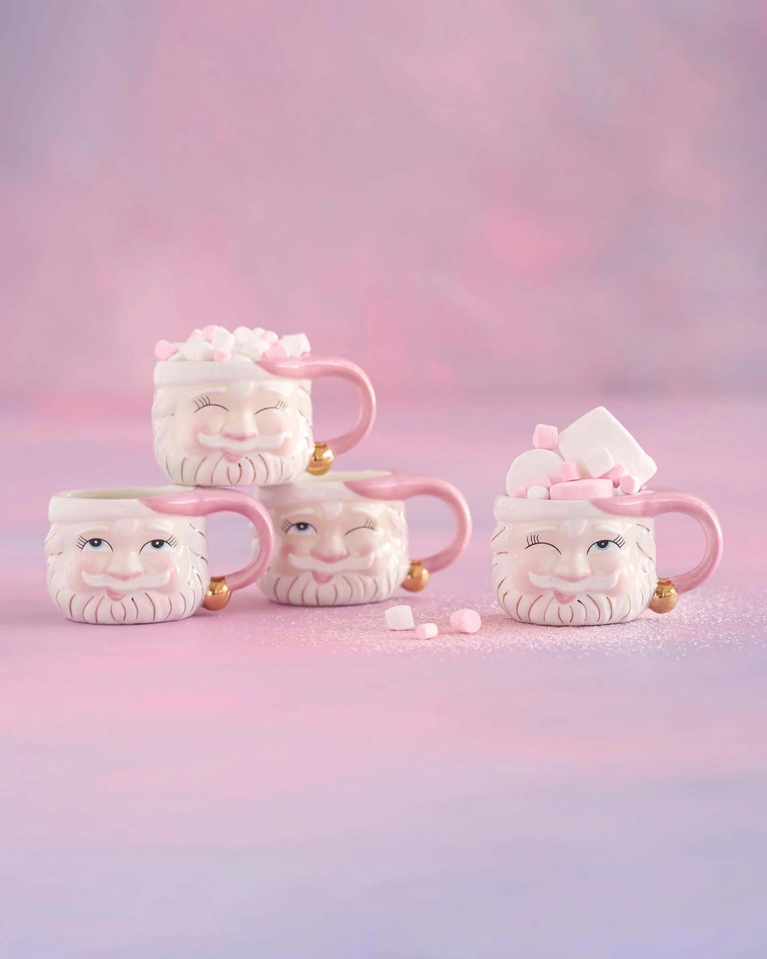 Perfect for your holiday hot cocoa, the Papa Noel Mug from Glitterville features a winking Santa face and a bit of festive gold detail. Please note that this purchase includes one mug.