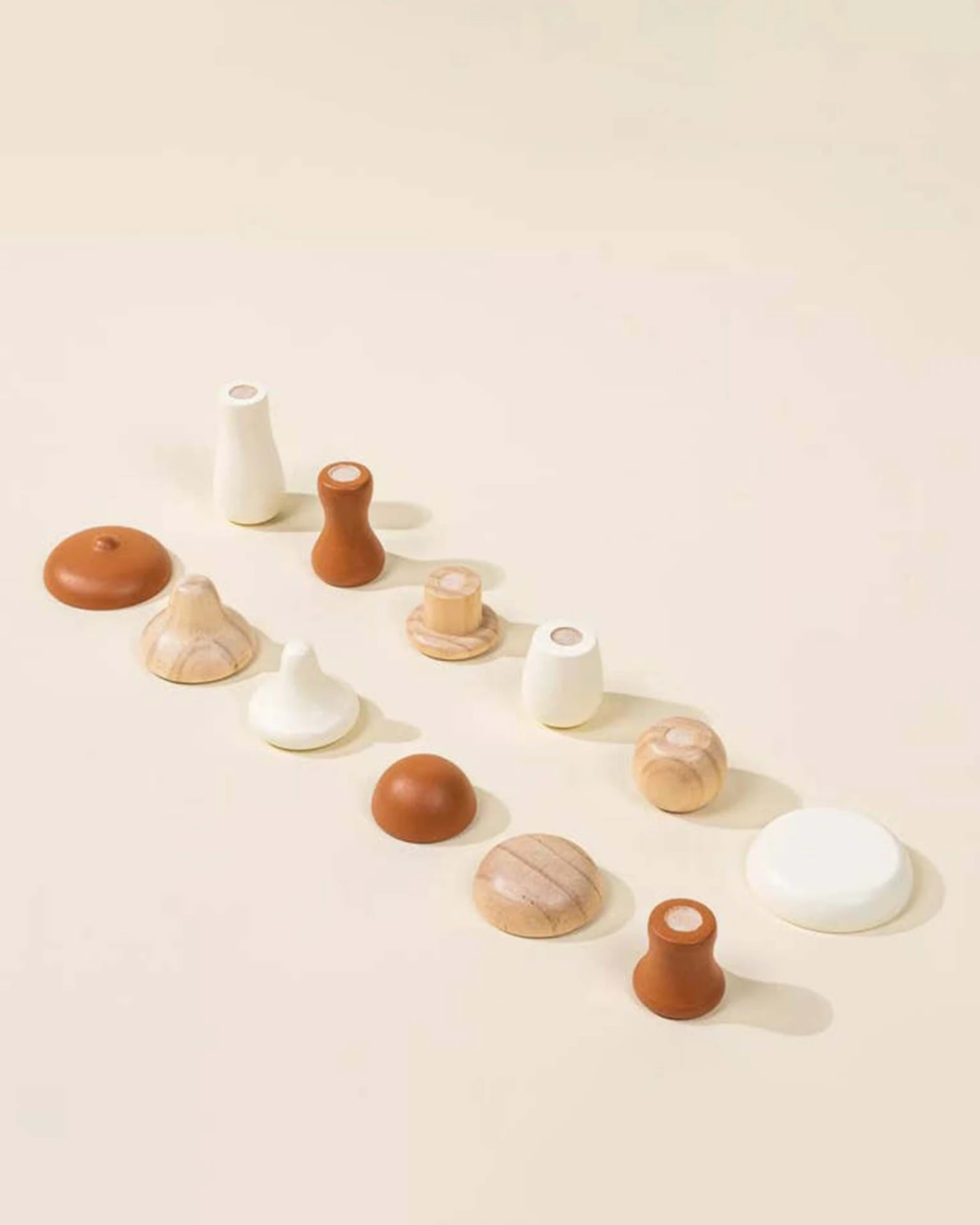 This is a great game to help children learn as well as introduce them to healthy eating habits. Through playing, they will discover a world of colors and flavors, while they learn to create the different mushrooms in their basket! Children love to play pretend. The Wooden Mushrooms Playset is perfect on its own or combined with pretend play modules, such as the Mini Wooden Play Market Stand and the Mini Wooden Play Kitchen.